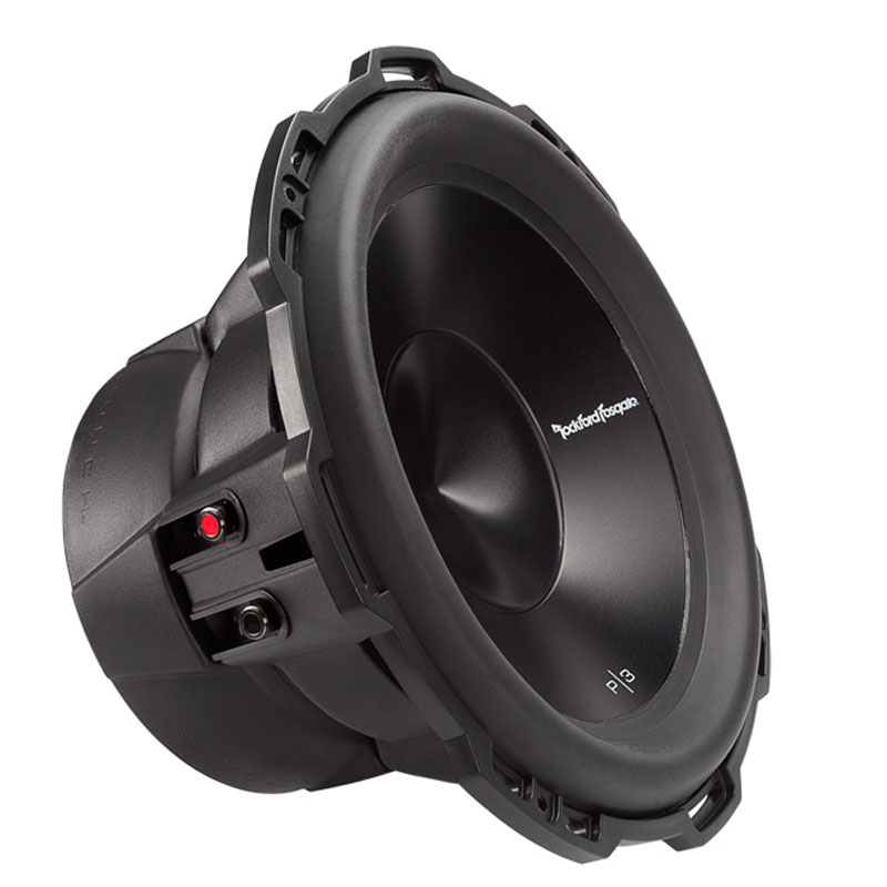 Rockford Fosgate designed the P3D2-12 12" subwoofer to stay strong even when the bass gets hot. This Punch P3 sub features a rigid anodized aluminum cone that holds its shape through heavy play, while staying light and responsive. Rockford Fosgate uses a new technique to attach the oversized rubber surround to the cone that increases available cone area up to 25%, so this sub can push more air for even bigger bass.