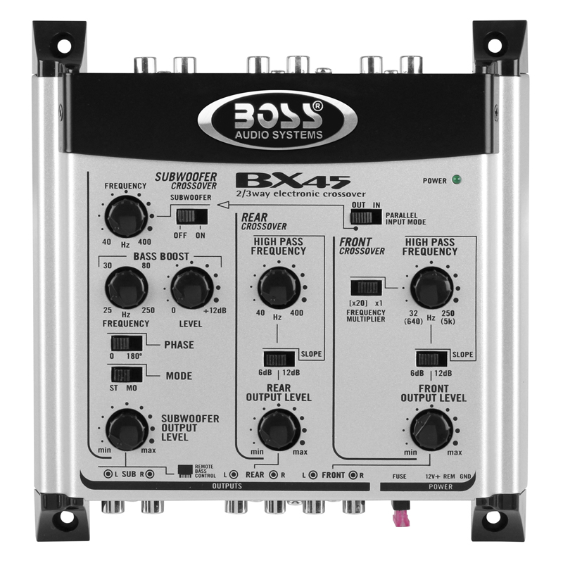Speakers reproduce sound based on high, low, or mid-range frequencies. This process is called the crossover effect and occurs because the vast majority of audio systems cannot cover the entire spectrum sufficiently to minimize sound distortion and maintain an appropriate frequency ratio. A lot of amplifiers have either a built-in “variable” crossover so that you can set the frequency at exact sound specifications or a “fixed” crossover. By connecting the BX45 to your amplifier, you will have total control you exactly how you want your bass to sound, as well as your mid level and high level frequencies, giving you a pristine listening experience.