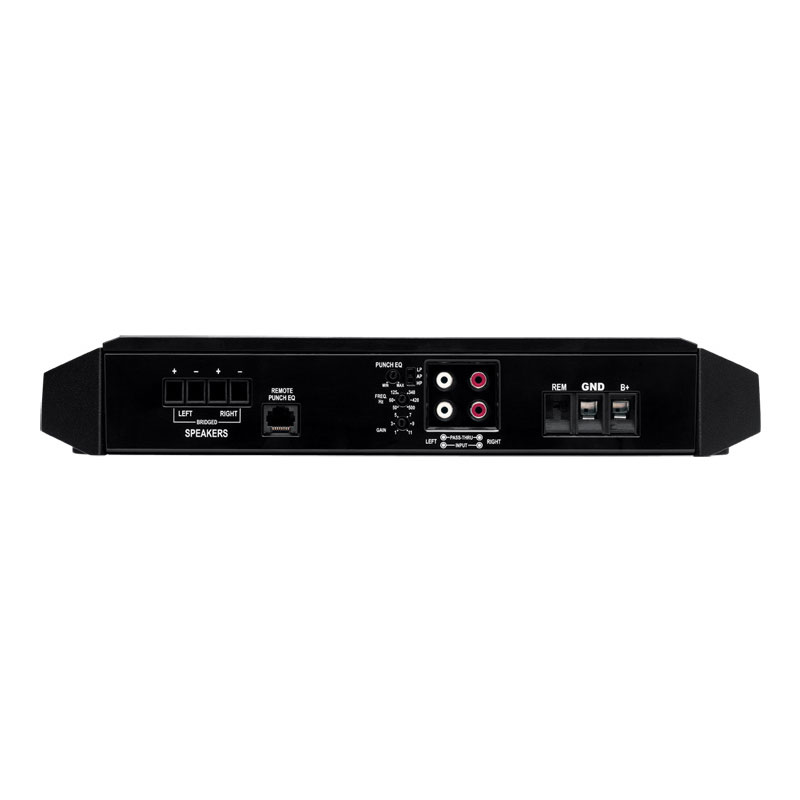 The T600-2 small chassis design and power output is a great alternative when power is a must and space is limited. Don’t let its size fool you though … this all MOSFET amp packs enough power to run one 2-Ohm DVC or two 4-Ohm DVC subwoofers with ease and its dual function EQ can tune-in any pair of high frequency component speakers for premium sound quality.