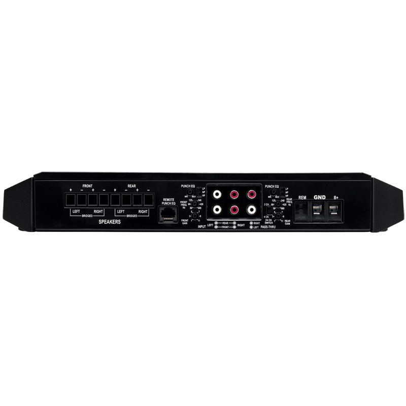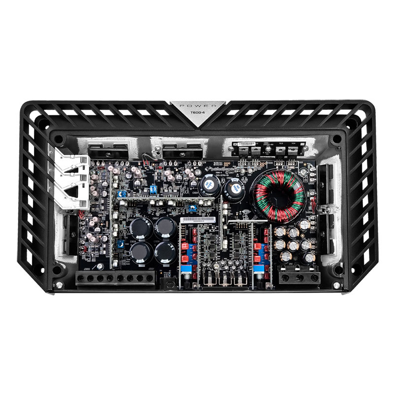 The T600-4 amplifier puts out 100 watts RMS into each of its four channels — more than enough to drive your front and rear speakers to their musical peaks. Or you can bridge your T600-4 to blast 300 watts each to a pair of subwoofers. Either way, you can depend on clean, powerful sound from your Power Series amp.