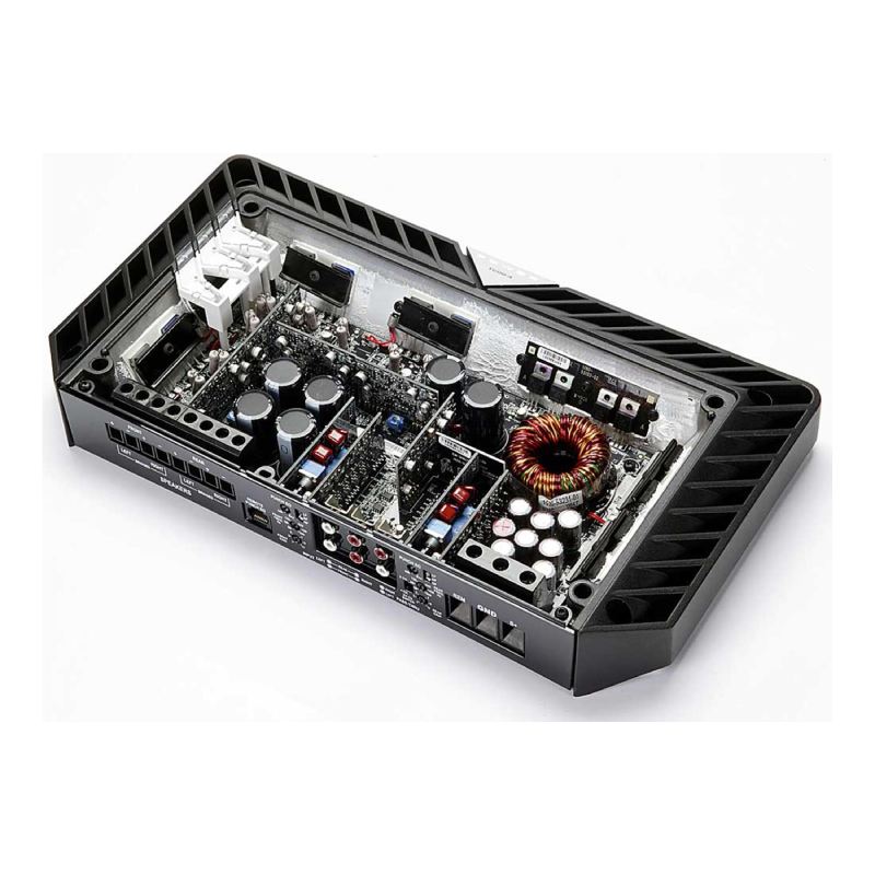 Power Series amps use Rockford Fosgate's patented, award-winning "Dynamic Thermal Management," a 3-stage cooling system that uses forced air to dissipate heat evenly across the amp and out through the large heatsinks. This results in cooler internal components, higher efficiency, and lower distortion.