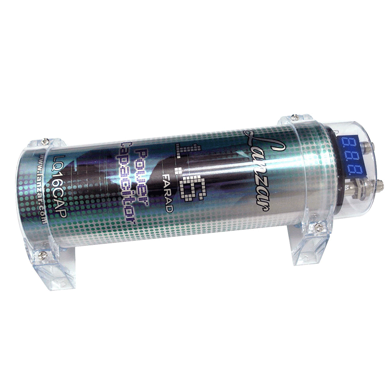 A great sound system needs a great capacitor: a high-demand audio setup can often place extra demand on your car's electrical system. When you need power, especially for booming bass and soaring highs, this 1.6 farad Contaq-series capacitor will have it at the ready. And it's got all you need to make sure your system sounds awesome and stays safe: a blue digital voltage readout to show you how much power is available, electronic polarity protection, and an over voltage protection circuit. And this won't just make your system sound great - it looks great too, thanks to the flash LEDs. Includes one pair of clear brackets, chrome plated post kits, charging bulb and mounting hardware.