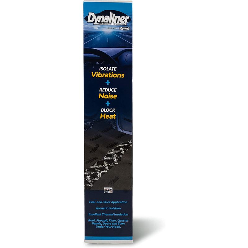 Dynamat Dynaliner provides high acoustic absorption and excellent thermal insulation for a variety of vehicle applications. You can apply this self-adhesive Dynaliner sheet on top of Dynamat in several locations, such as your car's floor, doors, or roof. Dynaliner increases the efficiency of your vehicle's climate control system, improves stereo imaging by reducing high-frequency reflections, and reduces interior noise levels, especially in the low-frequency range.