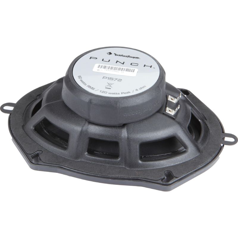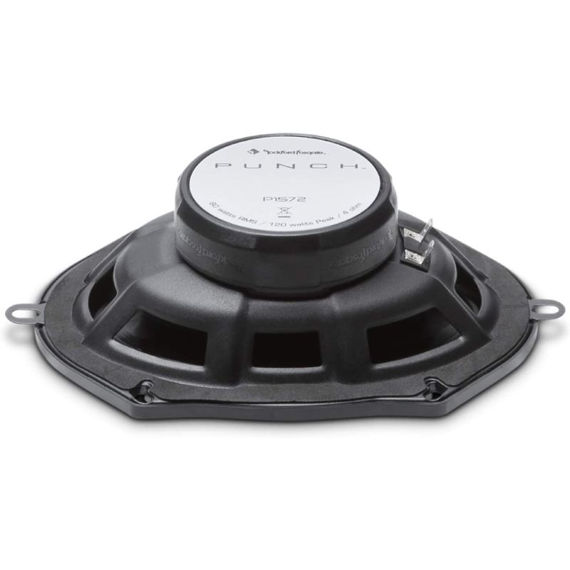 Rockford Fosgate designed the Punch P1572 5"x7" speakers as a high-grade replacement for your factory speakers. Each speaker features a responsive polypropylene cone and butyl rubber surround that'll stand up to hours of high-volume jams. Rockford Fosgate uses a new technique to attach the surround to the cone that yields up to 25% more cone area, for fuller sound and stronger performance. The dome tweeters provide clear, extended highs that can hold their own when the bass gets heavy.