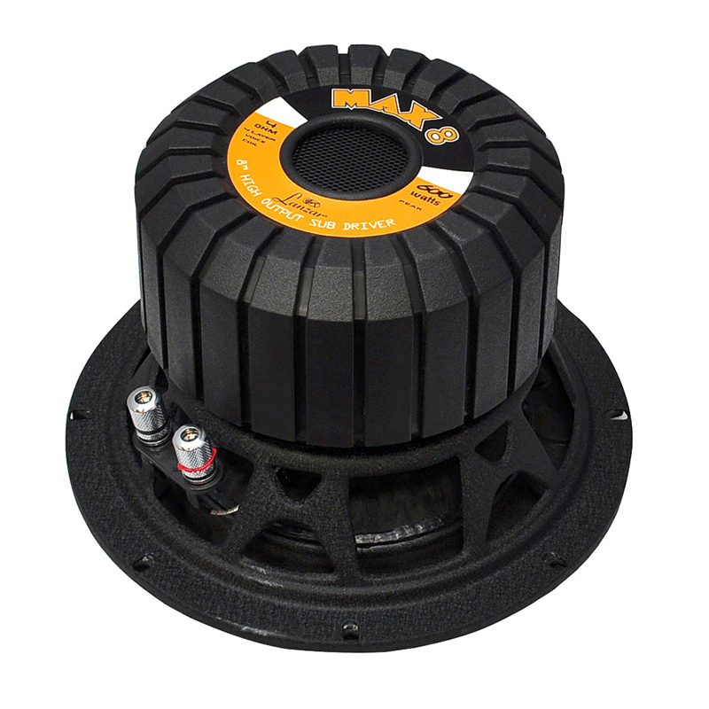 Lanzar's MAX-series speakers will push your audio to the MAX! This 8' small-enclosure sub will add extra punch to your low-end and give you that huge sound you want. The sound is produced by a 1.5' four-layer high-temperature Kapton voice coils with two 50 oz. heavy double-stacked magnets, pushing 600 watts MAX power. It's all housed in a stamped steel basket for heavy-duty stability. And your booming sound is enhanced by the wide, non-fatiguing rubber suspension, specially designed rubber magnet boot, and the bumped and vented motor construction. 4 ohm impedance.