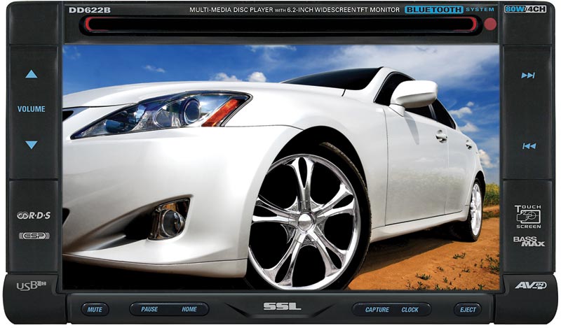 Bluetooth Enabled Double DIN In-Dash DVD, MP3, CD, AM/FM Receiver with 6.2 TFT Touchscreen Display