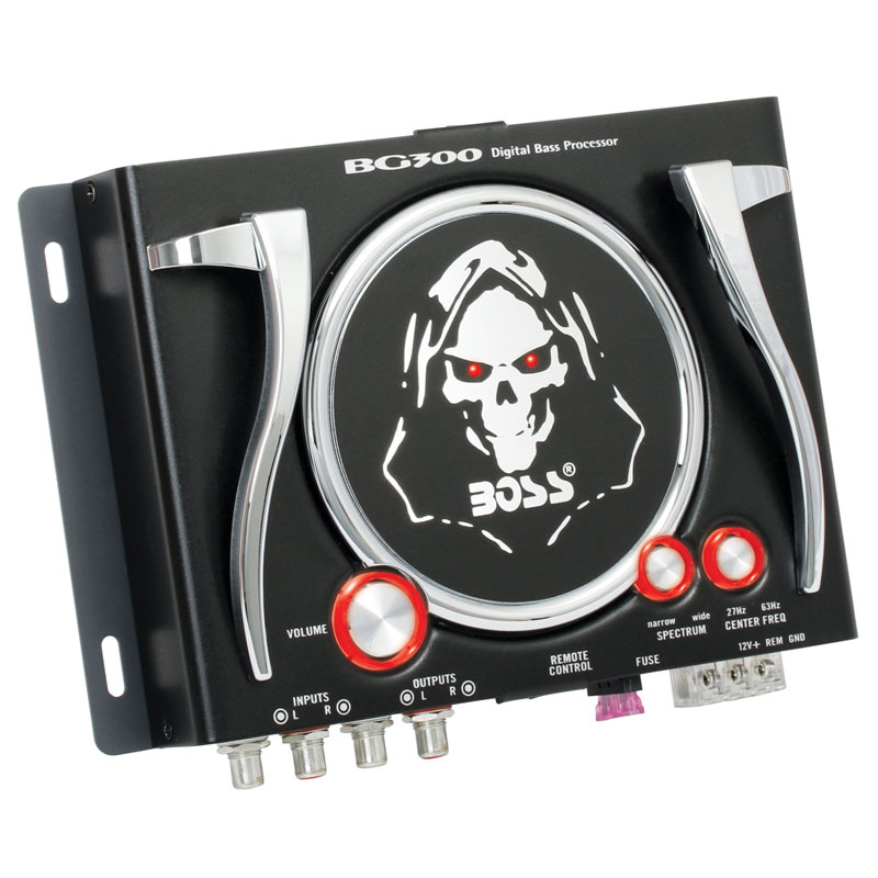 Add more customization to your car sound system and top it off with a sense of style with the BG300 Bass Generator with Illuminated Logo and Controls from Boss Audio Systems. This easy-to-use filter is essentially an equalizer for the low levels of your sound output. Simply select the frequency you want to amplify or quieten, and the BG300 will add or reduce the output of that particular frequency. Don't just let it sit in the background and do its job—with a brilliant lighted logo and illuminated controls, you'll be proud to show it off as you sample your system.