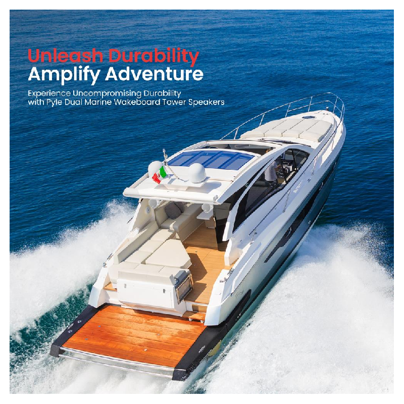These Pyle Hydra wakeboard speakers are designed for marine environments, making them water-resistant and ideal for use on the dock or at sea. They feature 200-watt power and are equipped with a 6.5-inch poly mica woofer cone for powerful low frequencies, and a 1-inch polymer dome tweeter for clear high frequencies, providing a frequency response of 70 Hz to 20 kHz. The butyl rubber surround and heavy-duty plastic cabinet construction enhance durability, while gold-plated plug terminals ensure distortion-free sound. A mounting bracket is included.