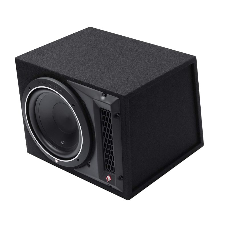 Rockford Fosgate's P1-1X10 ported enclosure fills your ride with juicy, high-volume bass, so you and your passengers can rock out to the latest beats. The enclosure's Punch P1 10" woofer features a paper cone reinforced with Kevlar fibers, supported by a rubber surround. The heavy-duty motor assembly and advanced cooling vents allow this sub to handle up to 250 watts RMS without flinching.