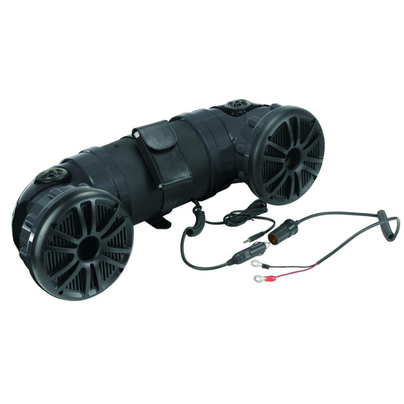 Gear up for great music on your next ATV adventure, camping or tailgate party with the Boss Audio ATV20 Weatherproof Powersports Plug and Play System. Compatible with any 12V power source, you can crank out your jams with the 450 Watts Max Power Amp, 6.5-inch Poly Injection Cone Speakers and 1.5-inch High Performance Dome Tweeters. Hook the Audio Output of your Smartphone or MP3 Player to the Auxiliary Input to play your music. The ATV20 is Fully Marinized to help provide protection against the elements.