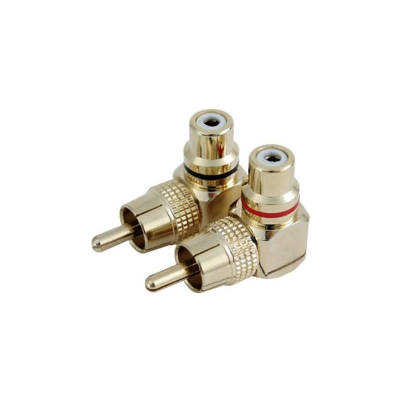 Gold-Plated Right-Angle Male-to-Female RCA Adapters, 2 pcs per Pack