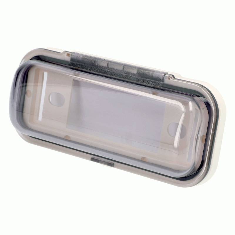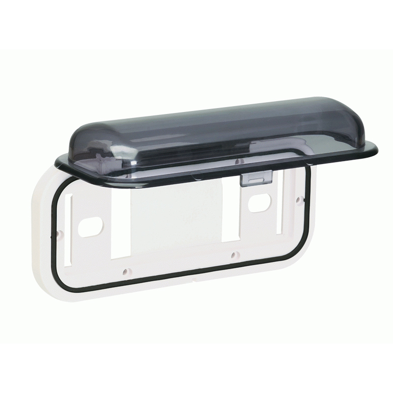 The cover is designed with a white base and transparent smoke-tinted door using a unique positive spring-loaded detent lock that won’t break from excessive vibration.