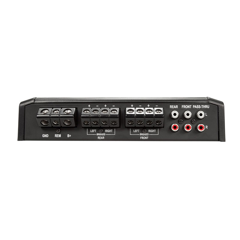 The Prime R400-4D amplifier offers high efficiency through the implementation of its Class-D circuitry while being able to power a full-range system. This amplifier is optimized for 4-channel front/rear systems so you can run midrange/tweeters in the front doors/dash while running midrange/tweeters in the rear doors/deck. Match with a mono amplifier for subwoofers and you'll have a Rockford Fosgate system that any Car Audio Fanatic will envy.