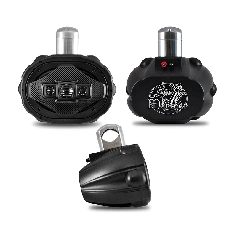 The wakeboard speaker system delivers exceptional surround sound with its 2" midrange cone, 0.5" superior dome tweeter and sub-tweeter, a 6" x 9" high-quality polypropylene cone, and a 1.25" high-temperature Kapton voice coil. The Lanzar midrange speakers are securely housed in a heavy-duty plastic cabinet with a butyl rubber surround, ensuring they handle up to 300 watts of peak power safely.