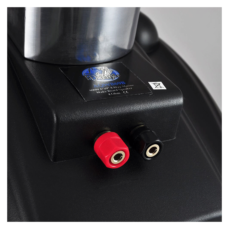 The wake speakers are designed for marine use, being weatherproof and water-resistant, making them perfect for both dock and sea environments. The 4-way speakers feature gold-plated plug terminals to prevent corrosion and ensure clear, distortion-free sound. Installation is made easy with the included 3" tube mounting bracket, custom grills, and all necessary hardware.