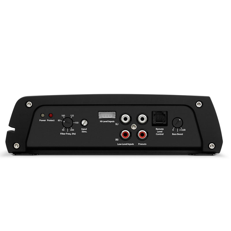 Targeted specifically for subwoofer applications, the JX500/1D includes a low-pass filter with continuously variable cutoff frequency selection from 50-200 Hz. It also features a variable bass boost at 45 Hz. with up to 12 dB of boost and an optional remote boost control. Dedicated hi-level inputs are included, in addition to conventional low-level RCA inputs, making it easy to integrate with a variety of OEM and aftermarket head units.