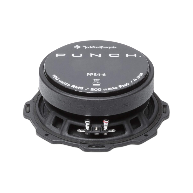 The PPS4-6 Punch Pro is a 6.5" midrange loudspeaker engineered for high SPL (Sound Pressure Level) conditions. The oversized motor structure and high temperature voice coil, combined with a fiber reinforced paper cone and corrugated treated cloth surround create the foundation for a highly sensitive speaker that can handle plenty of power. You'll be proud, because these things are loud! Includes protective grilles.