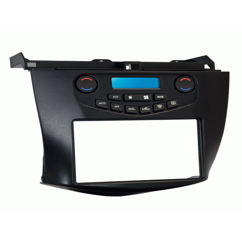 Metra's dash and wiring kit replaces the factory radio panel, allowing you to install an aftermarket DIN-sized (2" tall) or double-DIN (4" tall) receiver in the Accord's dash panel. It retains all heating, ventilation, and air conditioning controls, in vehicles with either single- or dual-zone controls.