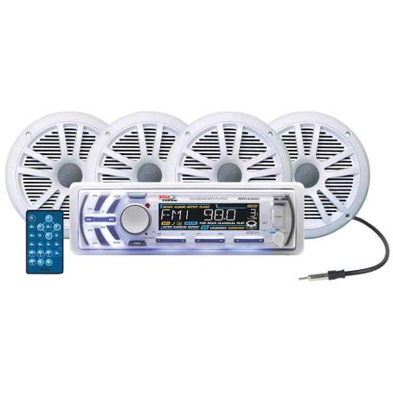 MR1440U Single-DIN In-Dash MP3-Compatible CD/MP3 AM/FM Marine Receiver with 2 pairs of MR6W 6.5" 60 Watts each 2-Way Marine Loudspeakers