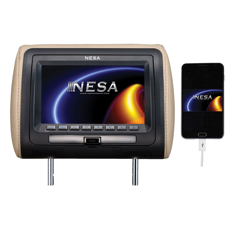 7” Preloaded Universal Headrest Monitor with built-in DVD/HDMI/USB/Mobile Hi-Definition Link