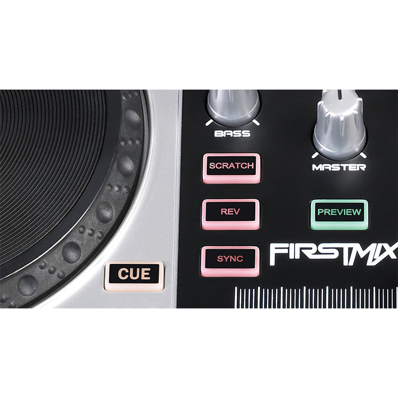 • Two-deck controller with volume, 2-band EQ, effects, and jog wheel for each deck