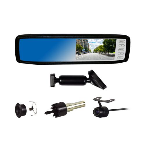 • Replacement rear view mirror with integrated 4.3" color LCD screen