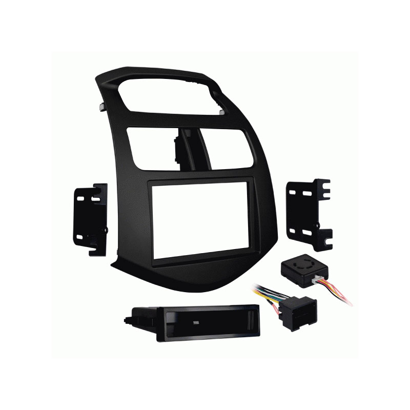 Single DIN or Double DIN Dash and Wiring Kit with Safety Chimes and RAP for 2013-2015 Chevrolet Spark Vehicles (Flat Black)
