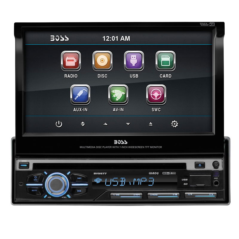 7" Single Din Motorized Touchscreen Monitor, DVD/MP3/CD AM/FM Receiver