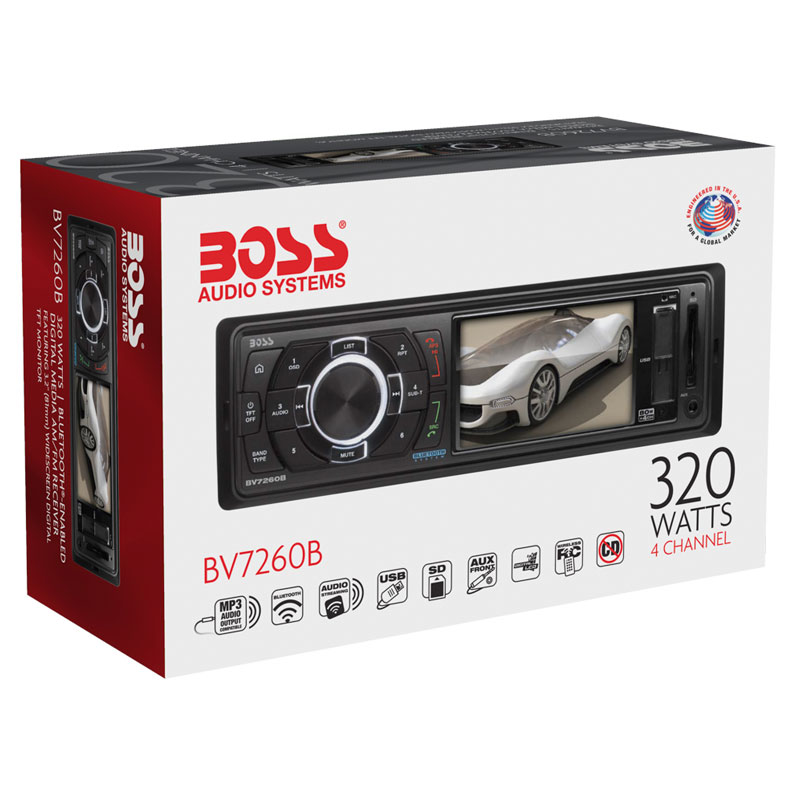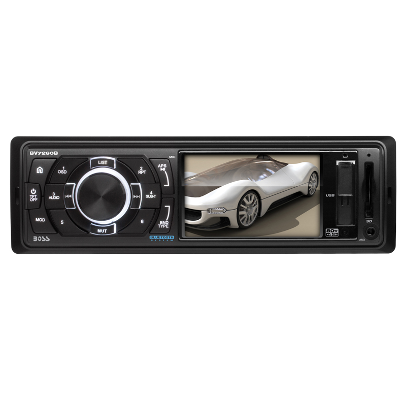 Max out your digital music options with the BOSS Audio BV7260B Single-DIN Mech-less Digital Media Receiver with a 3.2" Monitor. Tune in local AM/FM radio stations, hook up your smartphone or MP3 player through the Auxiliary input or plug into the USB and SD ports for more options. Bluetooth technology lets you stream music and make calls hands-free. Choose your sound style with the Preset Built-in EQ. The wireless remote lets you easily change it all up.