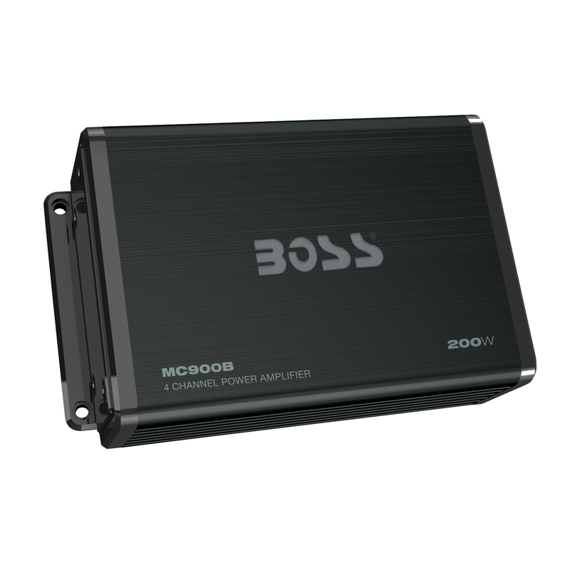 Rev up your music on land or sea with the Boss Audio MC900B Class A/B Full Range All-Terrain Amplifier. With 500 Watts Max Power this 4-Channel Amplifier is ideal for your entire audio system. It can power up your speakers, subwoofers or a combination of both. Bluetooth technology lets you stream music apps. No need for an In-Dash Head Unit to play your music. You can control it all with the Inline Multi-Function Remote. Plug into the USB Port to charge your USB-Connected devices. The MC900B Amplifier features weatherproof connectors to prevent corrosion and provide protection against the elements.