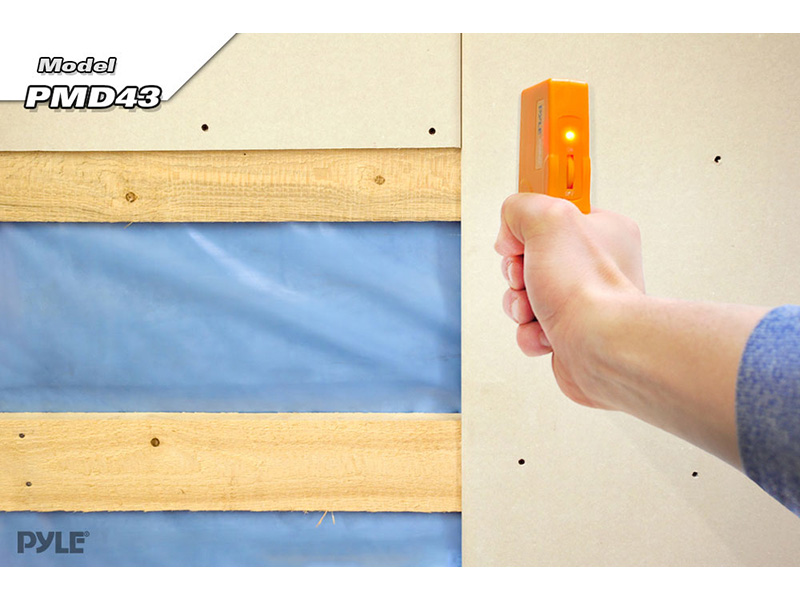 Pyle Handheld Metal/Voltage Detector W/ LED And Sound Alert, Sensitivity Adjustment The PMD18 locates metal objects and live conductors behind drywall paneling and plaster walls. Comes with visual and audible indicators that alert you to the presence of conductive metal or live voltage. Ideal for use in the field or at home. Adjustable sensitivity. Powered by 9V battery (not included)