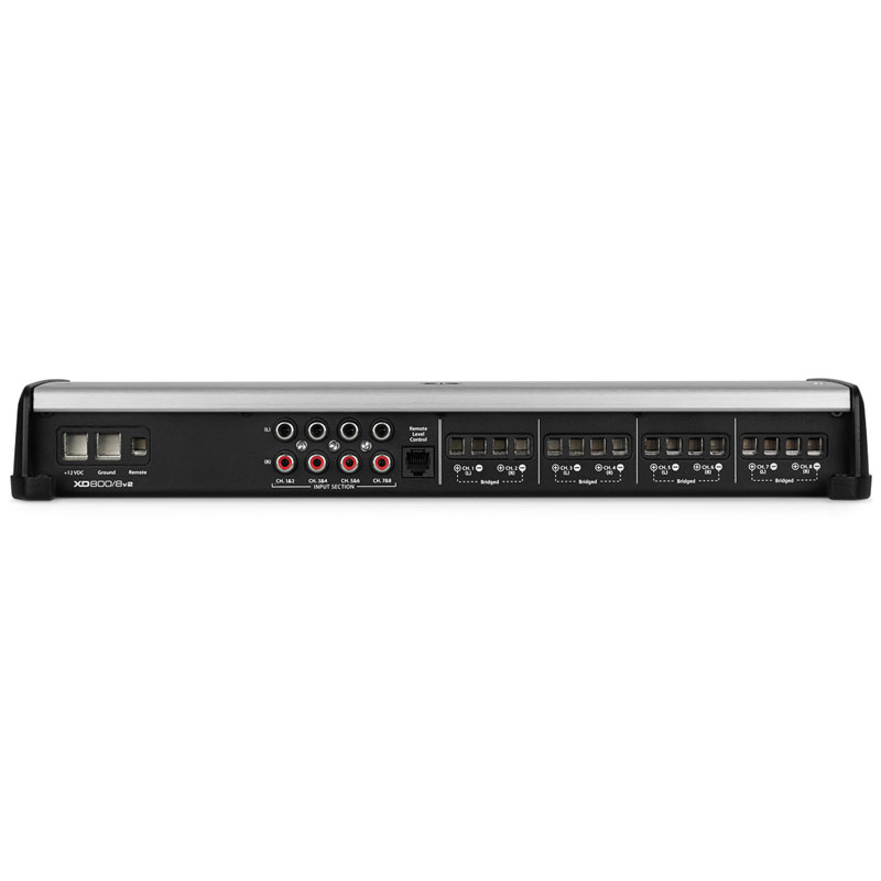 With its Class-D amp design, the JL Audio XD800/8v2 can deliver a power output of 75 Watts RMS at 4 ohms and 100 Watts RMS at 2 ohms per channel. It has a frequency response of 12 Hz to 22 kHz, allowing the amplifier to produce an extensive full-range frequency performance with minimal distortion. conditions.