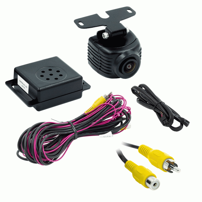 The TE-MDC is a universal camera that has the ability to be mounted in the rear of the vehicle and allow for 180 degrees of sensing angle for the vehicle. If an obstacle is crossing the cameras area, it senses the obstacle and provides a red halo around the camera and indication arrows in the direction of the oncoming obstacle, because the camera is able to see the obstacle. There are no additional control modules, everything is built-in to the camera itself. There is an alarm speaker provided for audible alerts of obstacles. The camera does not need any additional calibration or install outside the scope of a normal backup camera install.
