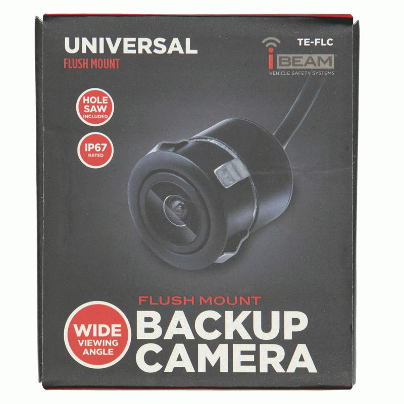 Our iBeam Flush Mount Backup Camera is a fast and easy solution to increasing driver safety. The universal flush mount is integrated into the body of the vehicle for an unobtrusive camera with only the lens visible. A wide angle lens provides a 110 degree viewing angle and sharp picture from the 1/4 inch CMOS camera which has 0.6 lux night vision. The camera is inside high quality metal housing with water resistant construction.