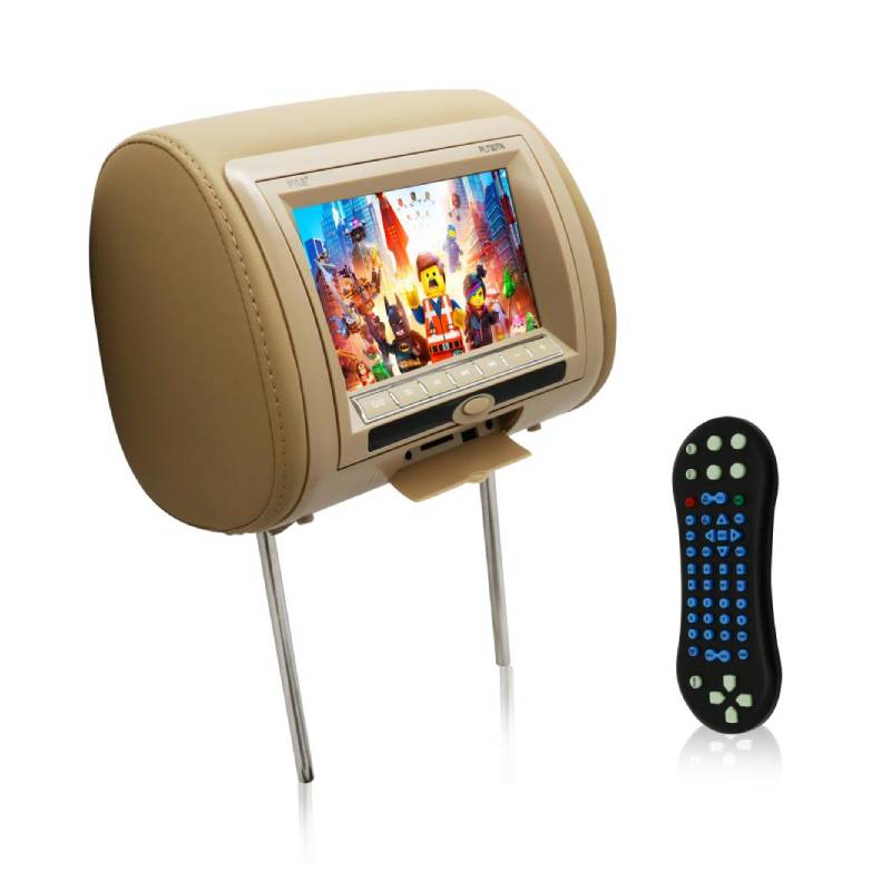 7'' Wide Screen Hi-Res Headrest Video Display Monitor with Built-in Multimedia Disc Player, USB Flash & SD Memory Card Readers, Remote Control, Zipper Cover
