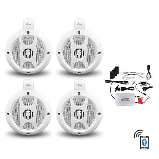 The Lanzar OPTIUTV10B Opti-Drive Bluetooth Waterproof Speaker and Amplifier System gives your vehicle versatile sound power on the go. The system includes a total of four 4''-inch marine grade construction speakers, that'll help you cruise around with additional sound power and style. This Opti-Drive Combo Amplifier and Speaker system includes sleek, bullet-design style speakers, 4-channel marine power amplifier, Bluetooth connection console and all the necessary cables and wiring -- to provide mobile audio on the move. Enjoy instantly streaming and high-powered Bluetooth wireless music streaming with versatile sound power! It works with all of your favorite devices and system setup is easy. Now you can enjoy mobile music on the go with the Lanzar Opti-Drive Bluetooth Waterproof Speaker and Amplifier System.