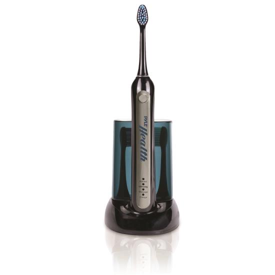 Pyle Health Ultrasonic Wave Rechargeable Electric Toothbrush with Automatic Charging Dock Base, Ultraviolet Brush Head Sanitizer and Ultra Quiet Operation (Black)