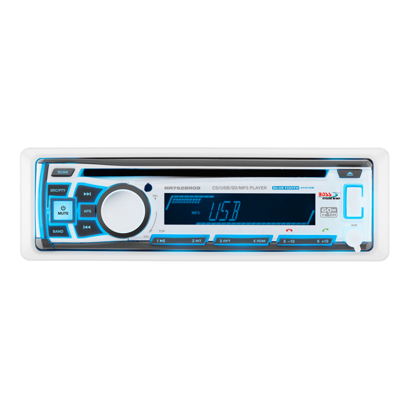 Bluetooth®-Enabled In-dash 1-DIN Marine MP3-compatible CD AM/FM Receiver Featuring Multi-color Illumination Option