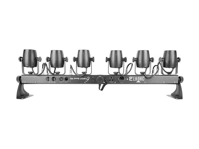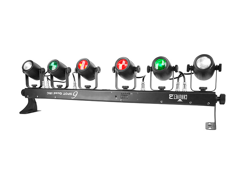 6SPOT™ Quad IRC is a 6-headed fixture that makes it easy to pin spot multiple locations or cover an entire area with vividly colored spots. Each of its half dozen moving heads contains an intense RGBW LED. This pin spotting dynamo features a variety of mounting options, including a unique slipover design that fits virtually all tripod stands, L-brackets and multiple clamping locations. An optional IRC-6 remote allows wireless control. Each product includes a handy carrying bag. Stand not included.