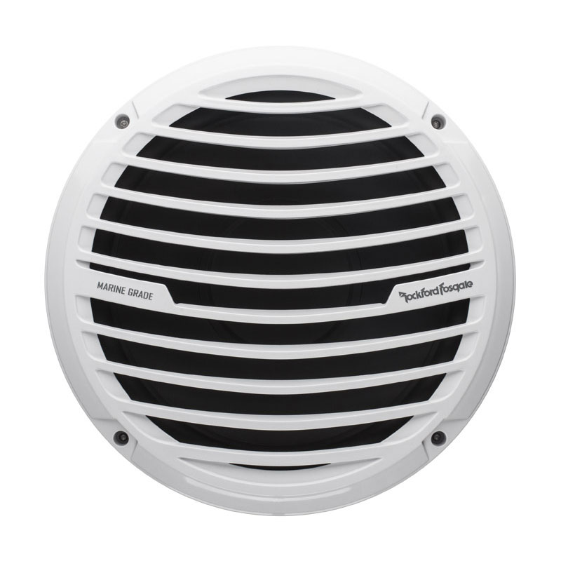 The RM112D2 is a white 12" subwoofer designed for marine watercraft or powersports applications. It features color matched grille and is UV and moisture resistant. Can be used in sealed, vented or infinite baffle installations.