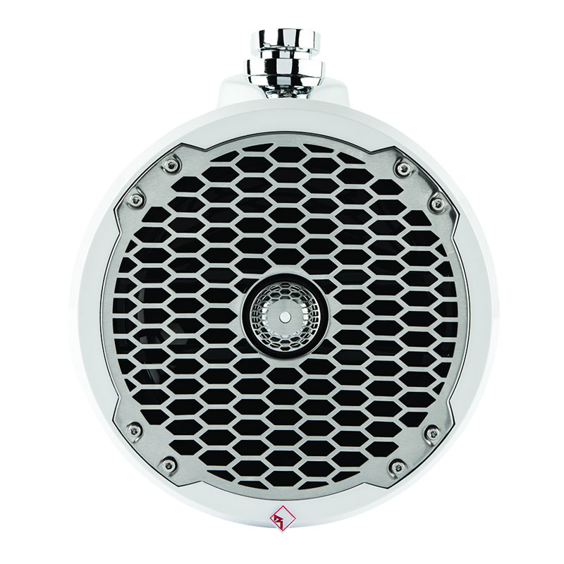 The PM282W is a white 8" true marine grade speaker loaded into a sealed tight enclosure with a wake board tower clamp. The speaker features a 8" woofer and 1" bridge mounted tweeter and protected by a stainless steel grille. The enclosure is high density poly-ethylene and features variable diameter cast aluminum C-Clamp that can rotate nearly 360-degrees for unlimited flexibility. Both speaker and enclosure are treated with UV inhibitors and conform to UV and Salt-Fog industry standards.