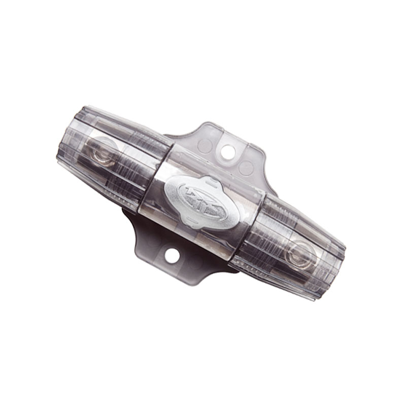 Platinum plated fuse holder, flexibility of multiple wire size inputs. Inline ANL or Maxi fuse holder, platinum finish. Accepts 1/0 AWG or 4 AWG wire.
