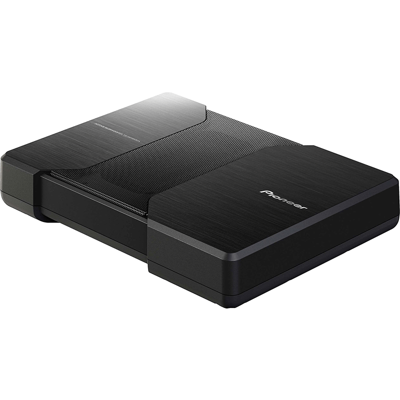 The TS-WH500A amplified subwoofer system is a truly groundbreaking approach in loudspeaker design. HVT technology uses a unique linkage mechanism, which allows the magnet and voice coil of the dual motor structure to be positioned horizontally to the left and the right side of vertically moving dual speaker diaphragms.