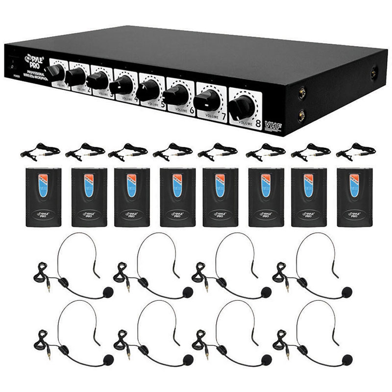 • WHAT'S IN THE BOX: The PylePro PDWM8900 complete package includes 8 Belt Packs Transmitters, 8 Clip Lavalier lapel Mics, and 8 Headset Microphones. The device can be used outdoor and indoor like a school classroom, church or at home for personal use