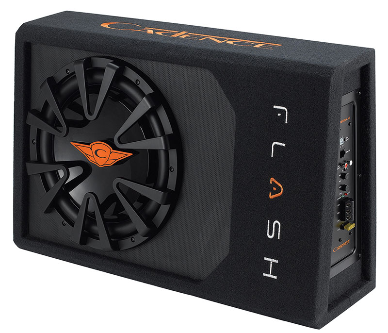 The Single 12" Active Subwoofer Enclosure has a super slim design. It has a 3D Molded High Gloss Dust cap. The surround is engineered with a Laminated Butyl Rubber Surround. The enclosure itself also features a Super Slim Sealed Enclosure Design. The Grills are Custom Molded with a Matte Black finish. Also included is a Automotive Grade Black Tweet Carpet with Embroidered Logo. The front panel is manufactured with a vinyl black texture. It has an amplifier that includes Variable Input Level with Low Pass Crossover Frequency Controls. Low Level RCA Inputs come standard as well as High Level Inputs with Auto Start Music Sense. A Dash Mounted Bass Remote included makes control much easier. Featuring an RMS Power Handling of 150 Watts. Also, the Subwoofer has a Peak Power Handling of 300 Watts. The Frequency Response pushes 40Hz - 200Hz while the Sensitivity pushes 93dB. It has a System Impedance of 4-Ohm. The Dimensions (L x W x H) are as follows: 24.50" x 7.00" x 15.375".