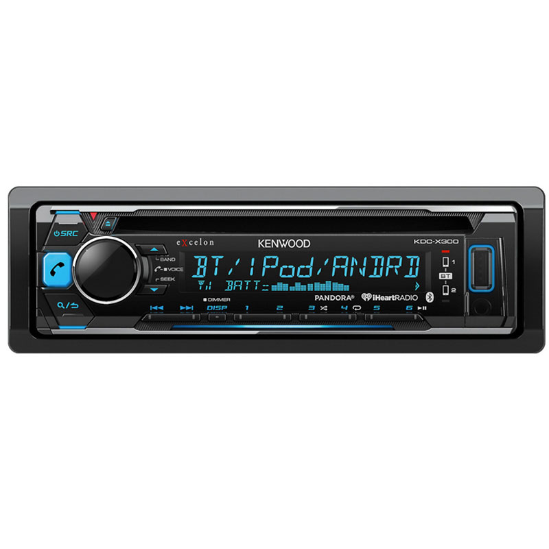 The Kenwood Excelon KDC-X300 is equipped with built-in Bluetooth (ver. 2.1+EDR/3.0) allowing you to make and receive phone calls wirelessly through the receiver (Hands Free); as well as stream music wirelessly from your smartphone to the head unit. When paired and connected to an iPhone with Siri via Bluetooth, the Kenwood Excelon KDC-X300 has the ability to access Siri through its front-panel controls and external microphone. Also, front-panel USB port lets you connect select Android smartphones that support AOA 2.0 for music playback. Another feature you have access is Pandora and iHeartRadio online music services through your USB-connected iPhone or Bluetooth-connected Android y smartphone.