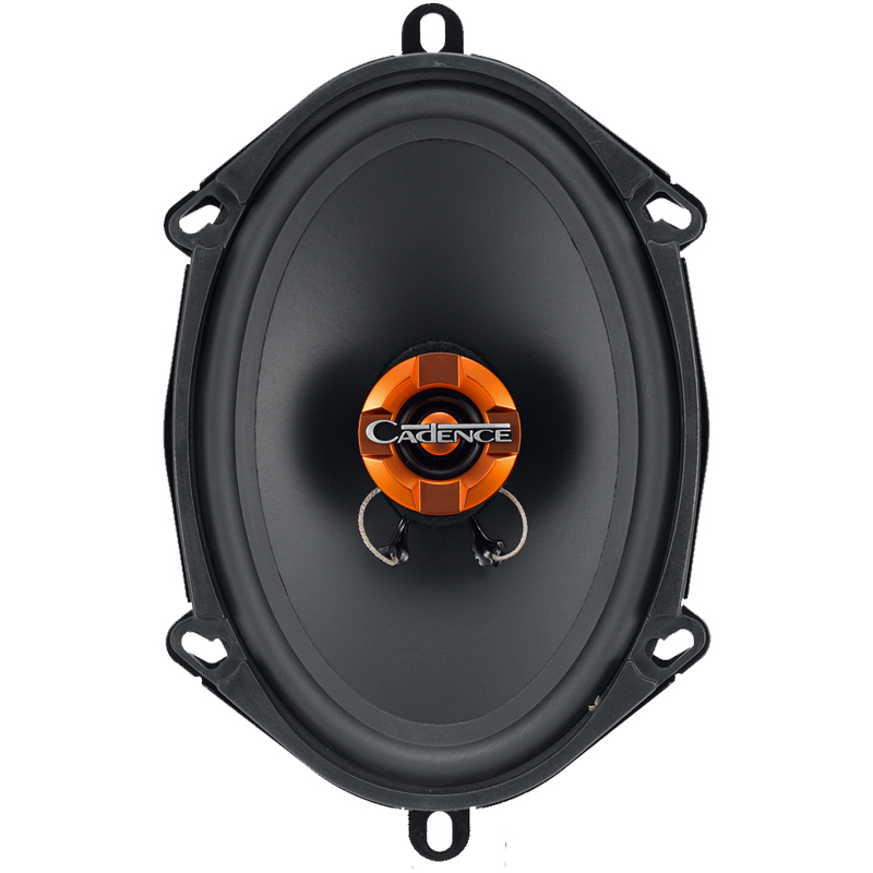 The QR572 are Candece QR series Speakers. The Speakers feature a High Temperature Kapton voice coil former. The Butyl Rubber surrounds provide a great sound. The Speakers have a Metallic Orange plated finish. Metallic Orange Polypropylene also makes up the design. They have a Custom crossover design. The QR series Speakers include Extended Frequency tweeters. In addition, this product includes Custom Molded Grills. Featuring an RMS Power Handling of 60 watts per Speaker. Also, it has a Peak Power Handling of 150 Watts per Speaker. The Frequency Response pushes 65Hz - 20 kHz while the Sensitivity pushes 90 dB. It has a System Impedance of 4-Ohm. The Mounting depth is 2.40". The size of the QR series Speakers are 5X7"/6X8"