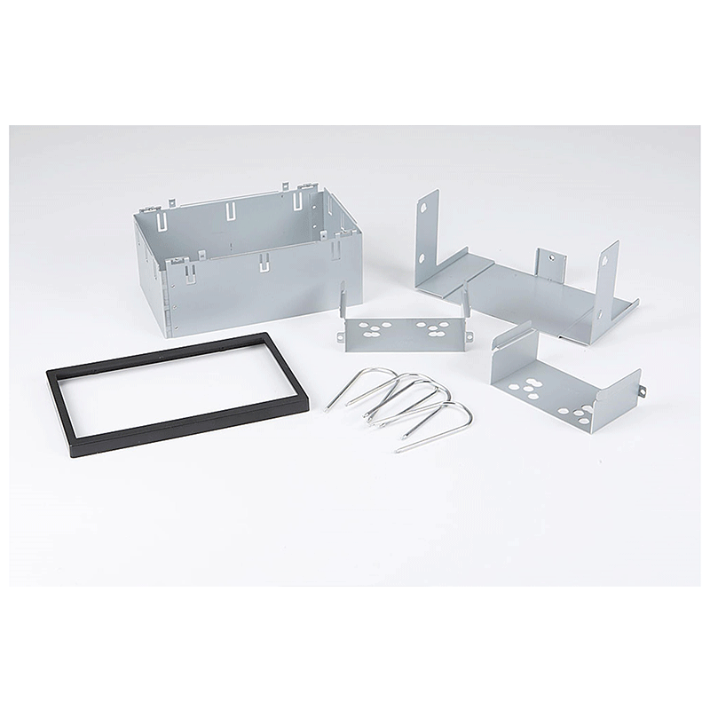 Compatible with all Pioneer double DIN sized receivers Double DIN installation kit designed for certain vehicle applications Kit includes cage, brackets, and trim ring.