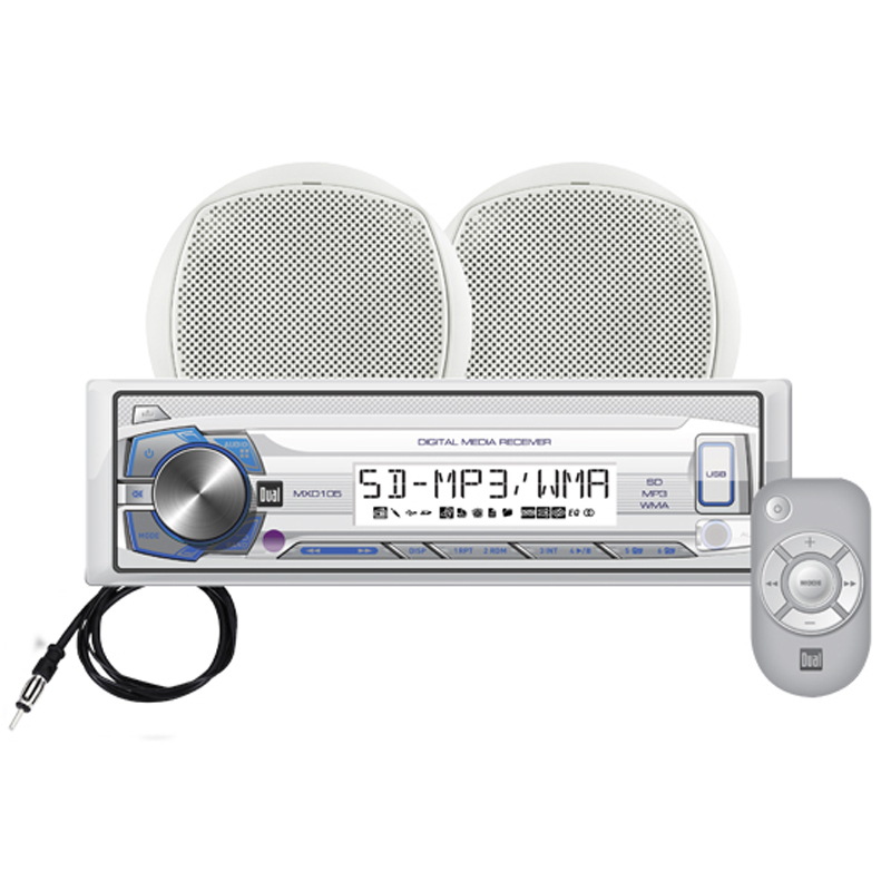 Planning to upgrade your boat's sound system? This marine package from Dual might just be the best option for you. This package consists of the Dual MXD105 marine receiver and the Dual DMP670 marine speakers. You'll get great sound without spending a lot.
