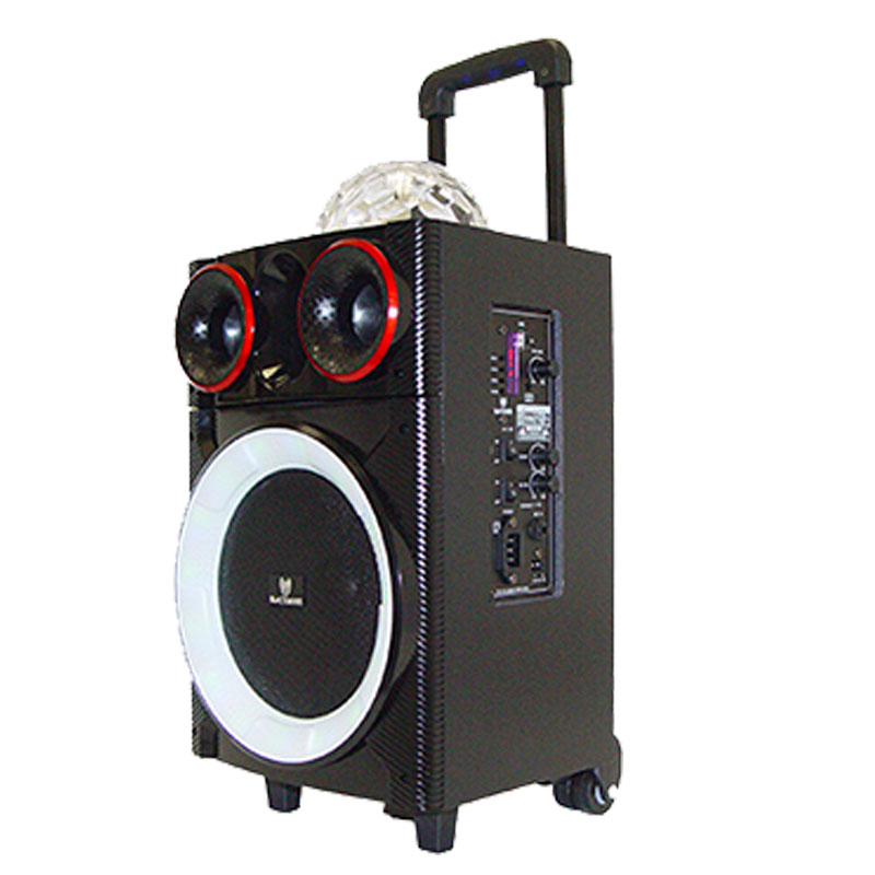 The BRS-2000 is a portable and amplified audio system with integrated MP3 music player, Bluetooth Connectivity, ¼” MIC Input, LED accent lighting and multifaceted LED light display emitter. This unit also has 12V power inputs, a rechargeable battery and standard AC power cord. This model boasts USB and SD card inputs as well as 3.5mm Aux stereo inputs and an FM tuner. Sound is produced by an 8” woofer dual 3” midrange drivers and a 1” piezo tweeter delivering 400W of musical power.